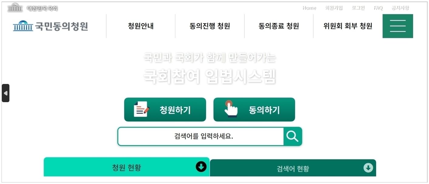 국민청원 홈페이지는 포털 검색창에 ‘국민청원’이라고만 쳐도 쉽게 나와요.